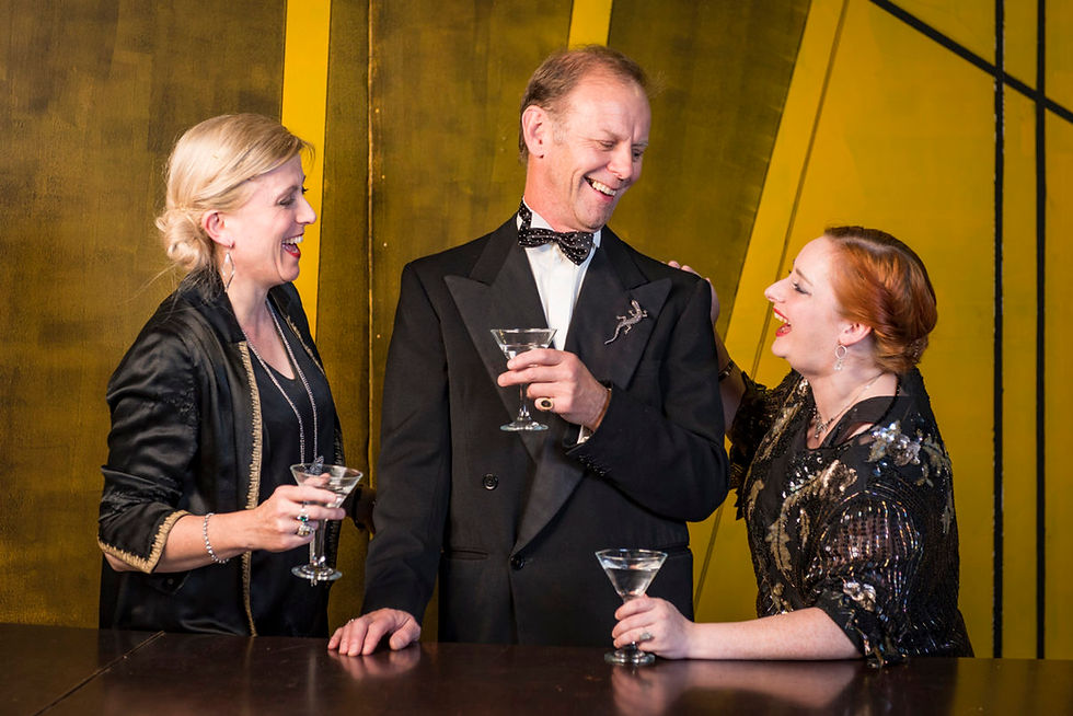The scene might settle as the run continues but that certainly doesn’t apply to act three when the ultimate confrontation between mother and son already explodes across the stage with extraordinary vigour. It is here we get two of the finest local theatre performances of the year, from Sean Glock as the wayward Nicky and Julie Godfrey as the unstable Florence. Under the tightly observant direction of Michael Rolfe, both rally magnificently to the soul-searching demands of two people facing the demons of their decadent existences. What is immediately striking is the sense of total commitment by both players and the director in examining the build-up to self-destruction by Nicky with his drugs dependence and dormant homosexuality and Florence through her artificial attempts to romance younger men and retain her fading charms. Such revelations may have shocked 1920s society but their hypocrisy ensured massive success for the play and for the young Coward’s career.